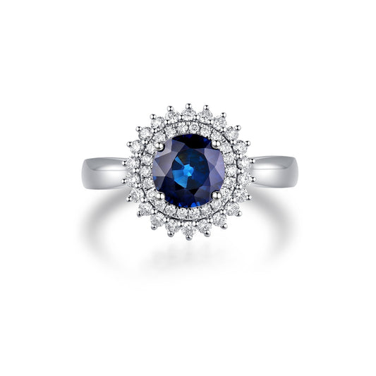 2.07Carat Royal Blue Sapphire Ring Set with 18K White Gold and Diamond