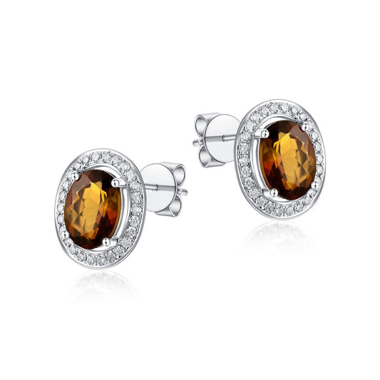 Nature Golden-brown Tourmaline Earrings With Diamond