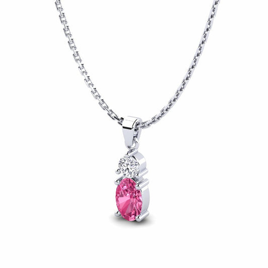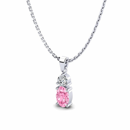0.842Ct Pink Sapphire Necklace Set with 18K White Gold and Diamond