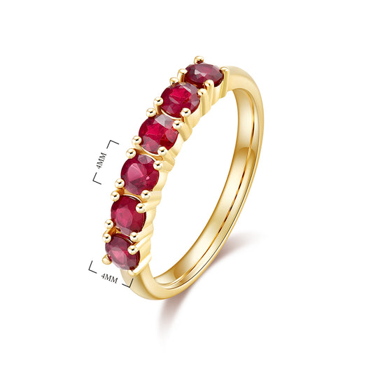 Nature Ruby Band Ring Set with 18K Yellow Gold and Diamond