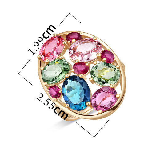 Multi-Colour Nature Tourmaline and Ruby Ring