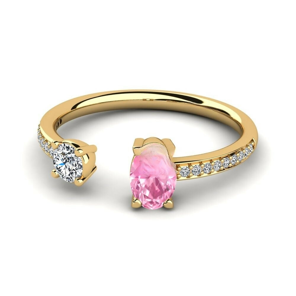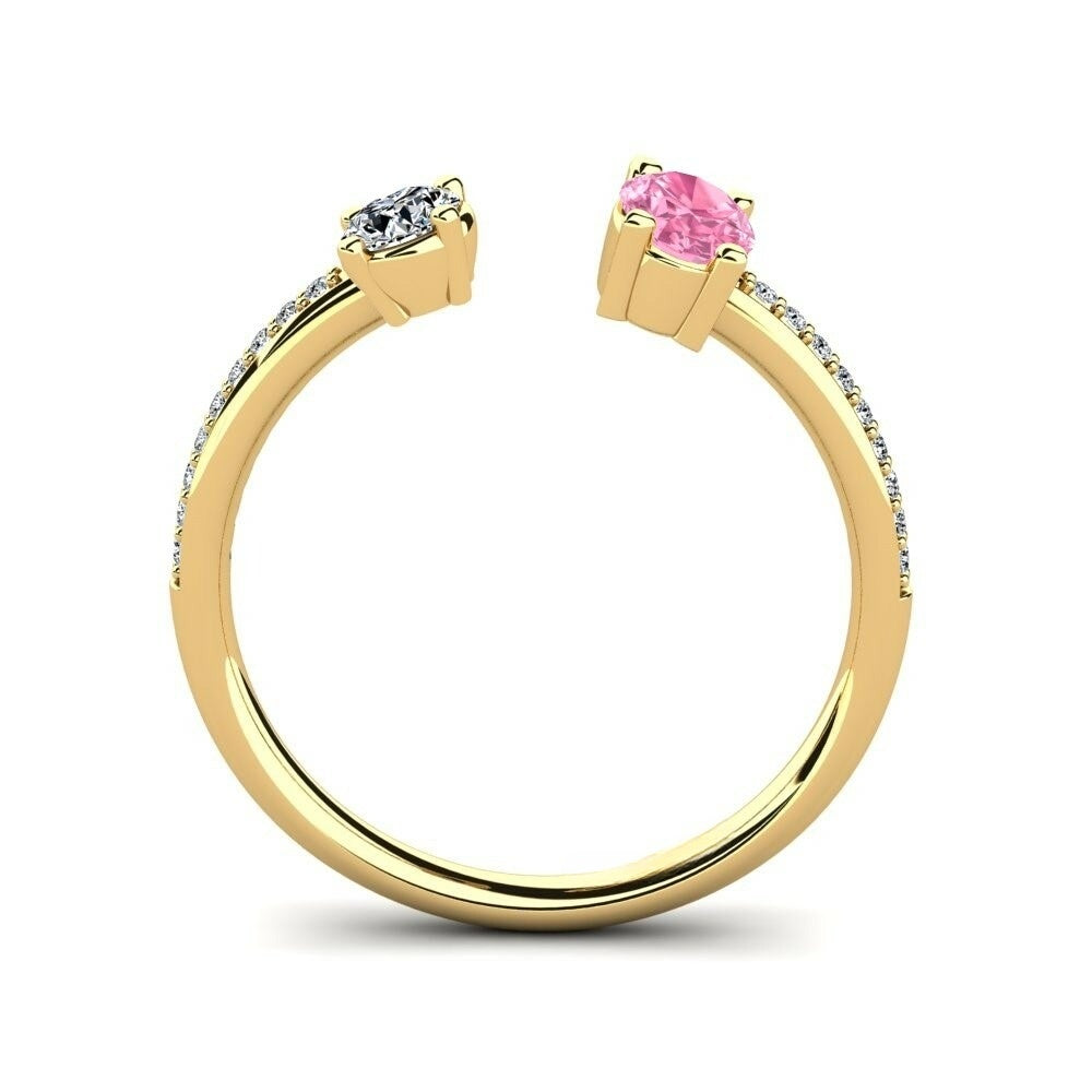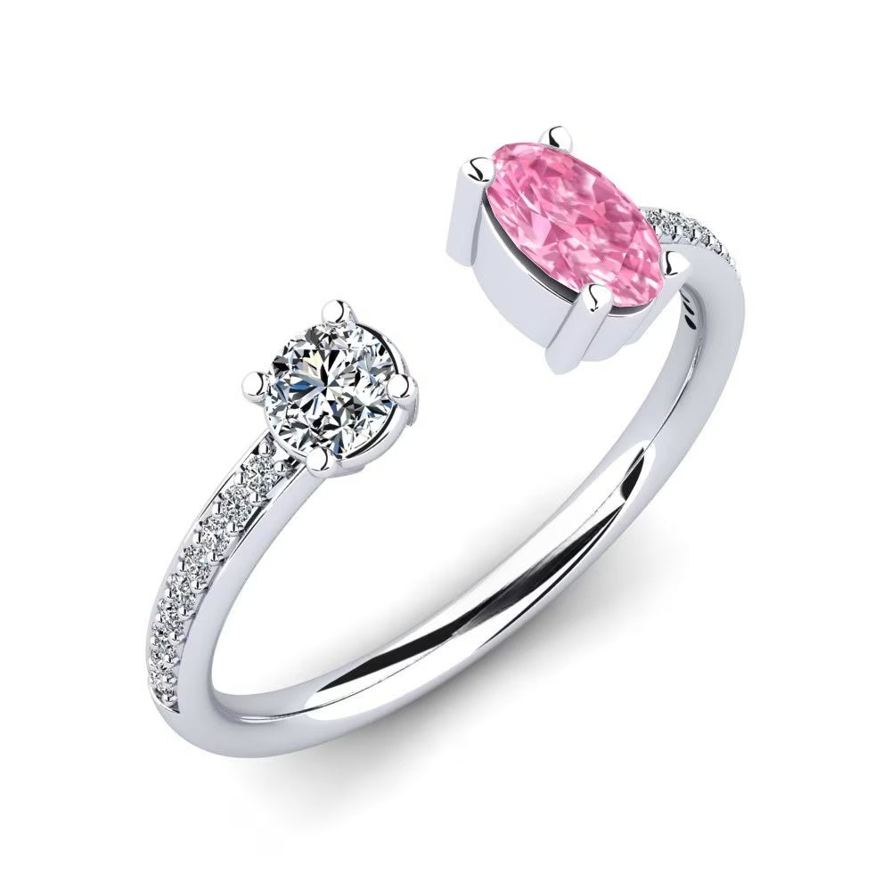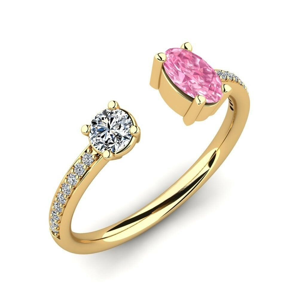 This Toi Et Moi Nature Pink Sapphire Ring is a beautiful and symbolic piece featuring two distinct stones side by side, representing the bond between two individuals. One stone is a captivating oval-cut natural nature pink sapphire, known for its deep, mysterious hue, while the other is a round brilliant-cut Moissanite, offering a beautiful contrast. The band is accented with smaller Moissanite, enhancing the overall brilliance and sophistication of the ring. This elegant design makes it perfect for those who value both symbolism and style, and it can be worn as a statement piece or paired with other rings for a layered look.